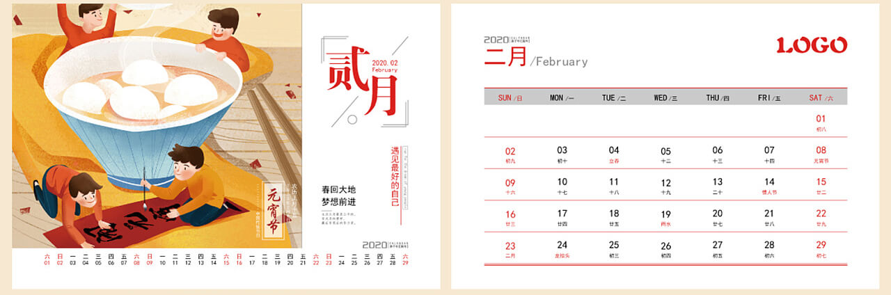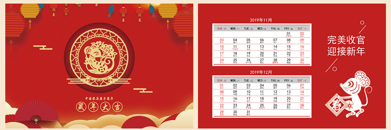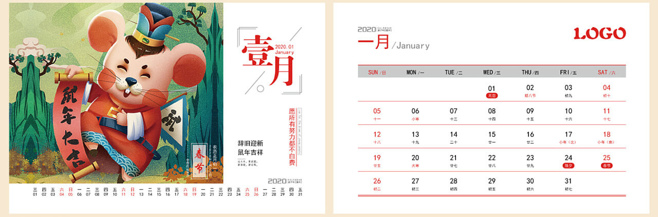 2020年鼠年臺(tái)歷設(shè)計(jì)案例欣賞 紅色系 鼠年大吉