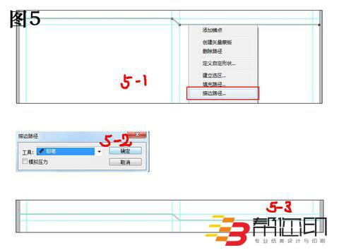 5、 設(shè)置鉛筆筆觸的大小為5.然后用鋼筆工具畫出如圖5中(5-1)所示的路徑,然后右擊鋼筆工具選擇“描邊路徑”,在彈出的對話框中選擇“鉛筆”如圖(5-2),然后點(diǎn)擊確定,描邊路徑后的效果如圖(5-3)所示。