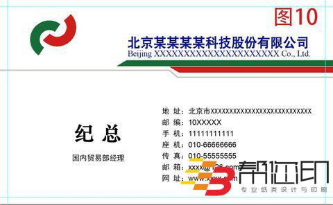 10、 然后在如圖10中所示位置,分別加上名稱、職位及聯(lián)系信息,在這里,字體大小不是固定的,可以根據(jù)自己的情況作調(diào)整,如字體6號,行間距8等等。